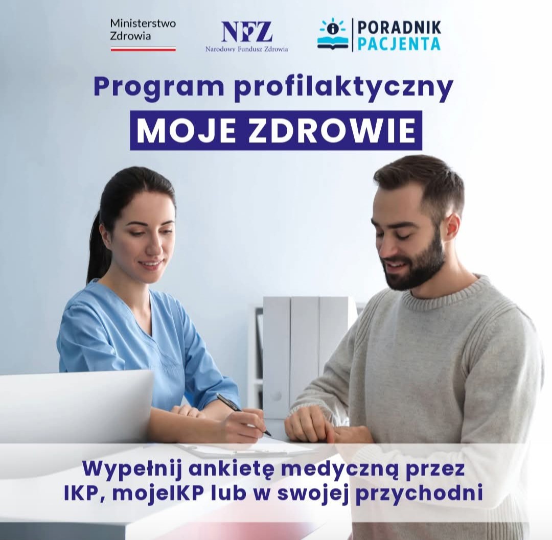 Zapraszamy do skorzystania z ogólnopolskiego programu profilaktycznego „Moje Zdrowie”, realizowanego w ramach Narodowy Fundusz Zdrowia we współpracy z Ministerstwo Zdrowia.